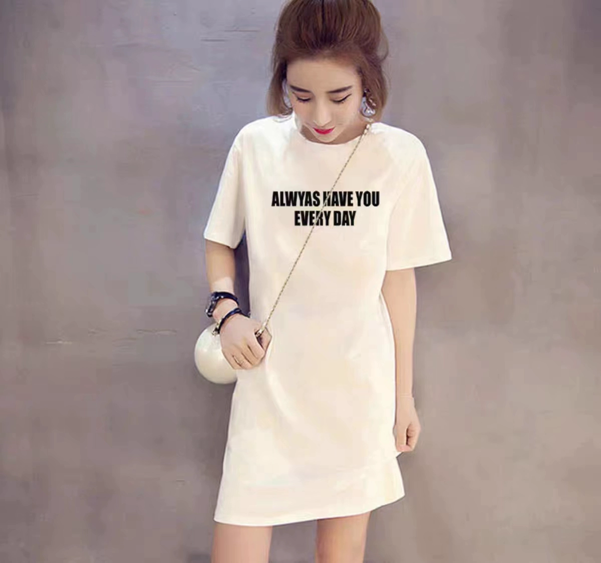 Pure cotton t-shirt dress summer Korean fashion slimming short sleeves