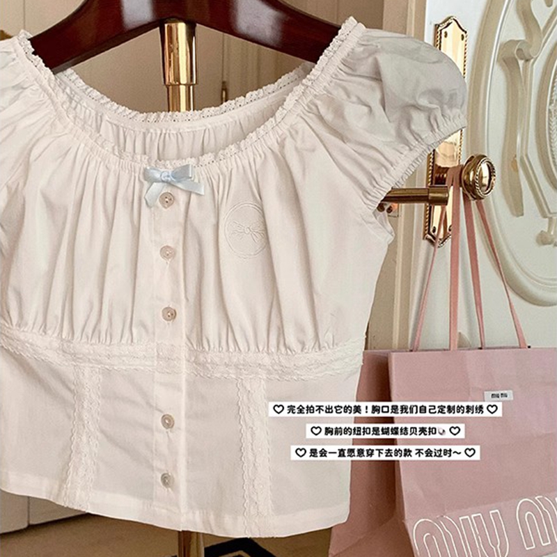 White small flying sleeves loose hollow short top shirt