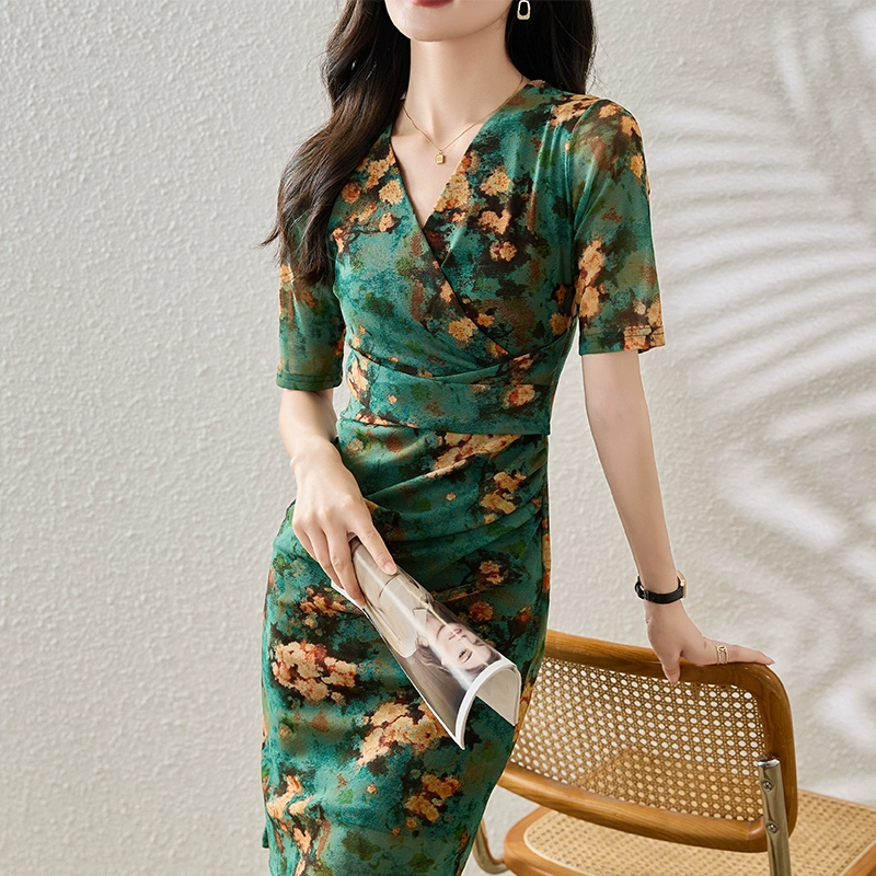Women’s summer V-neck tops slim-fitting short-sleeved sweaters