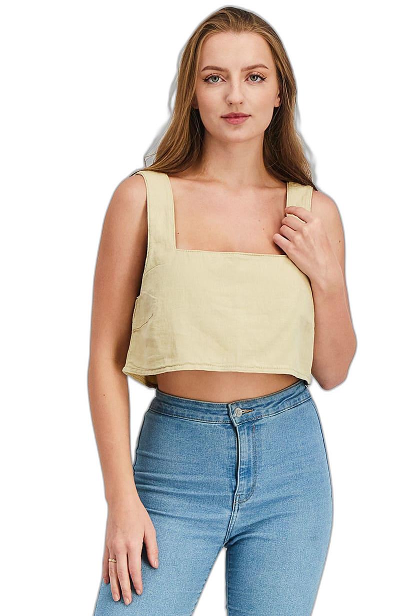 Sade Crop Top for Women with Square Neck and Sleeveless Design.