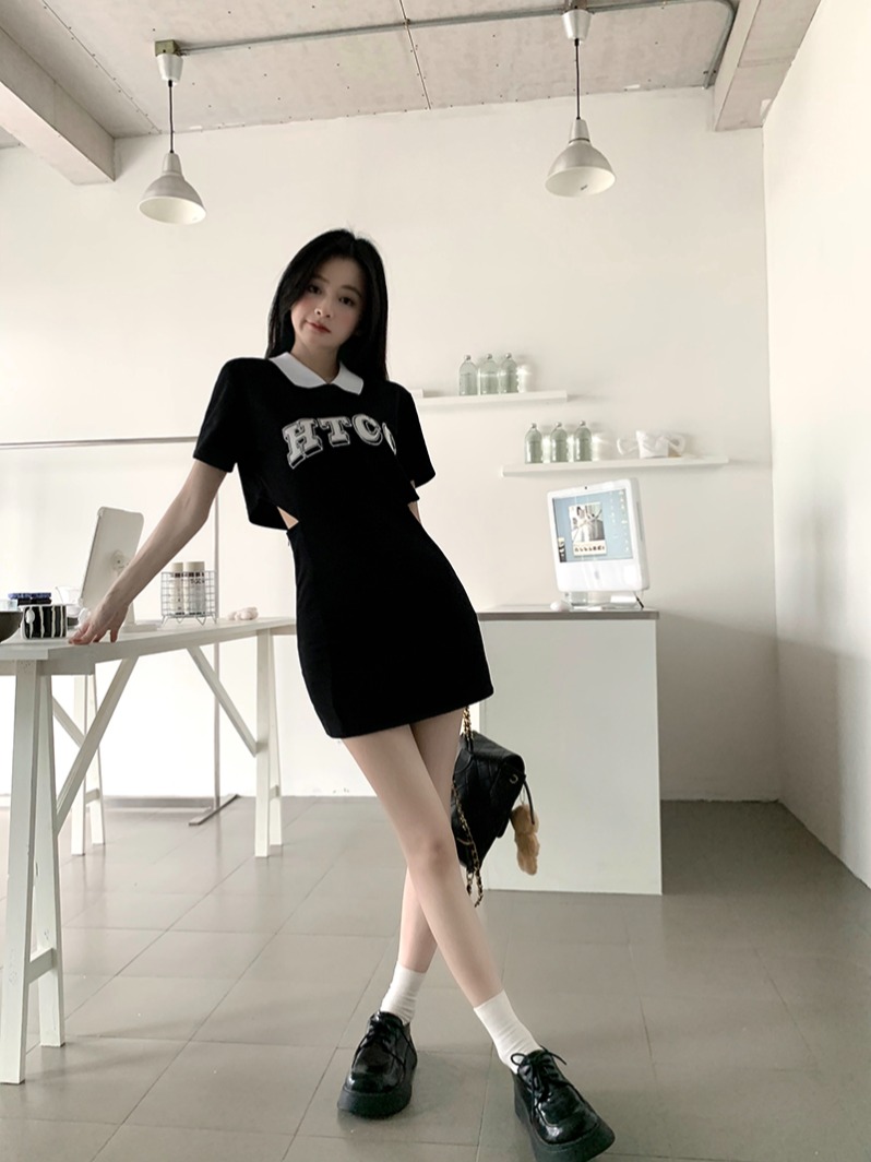 Polo summer hollow waist exposed niche hip-hugging dress