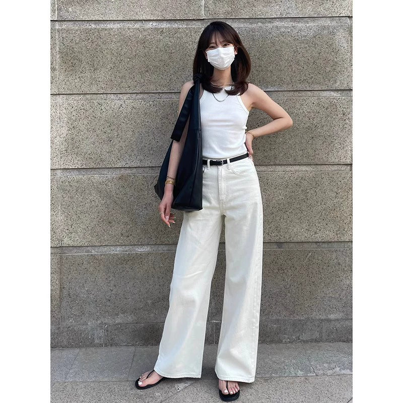 White nine-point summer thin high-waist straight jeans