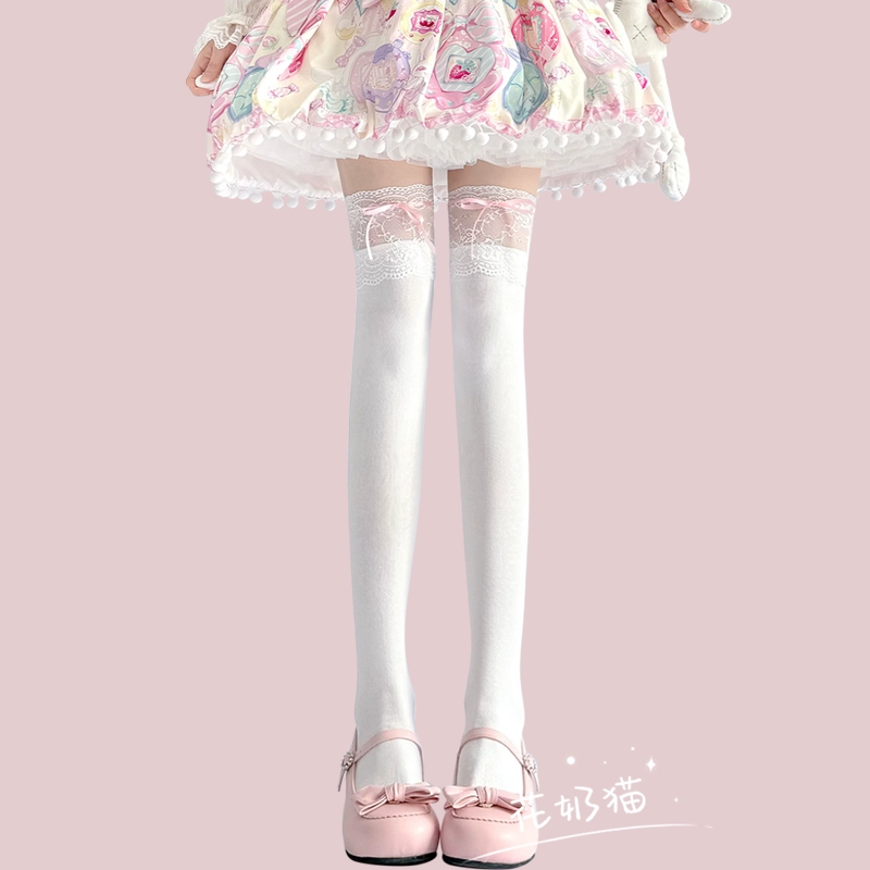 Japanese lace Lolita socks women’s spring and summer bow mid-calf socks pure cotton long thigh socks over the knee socks