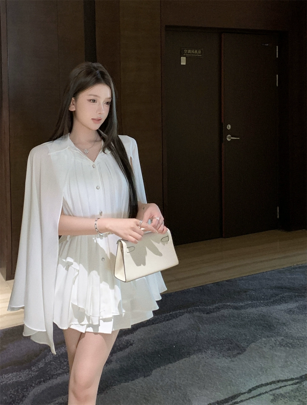 Chiffon design niche waist-cinching top, cloak and shawl