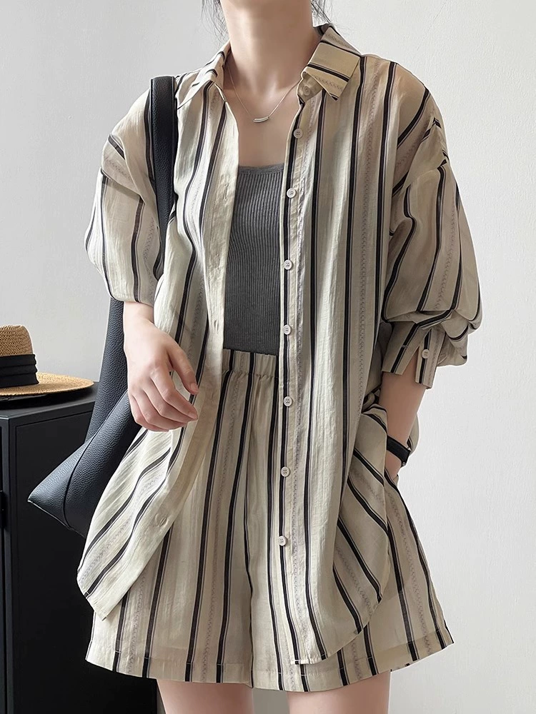 Internet celebrity Tencel sun protection clothing women’s summer striped shirt