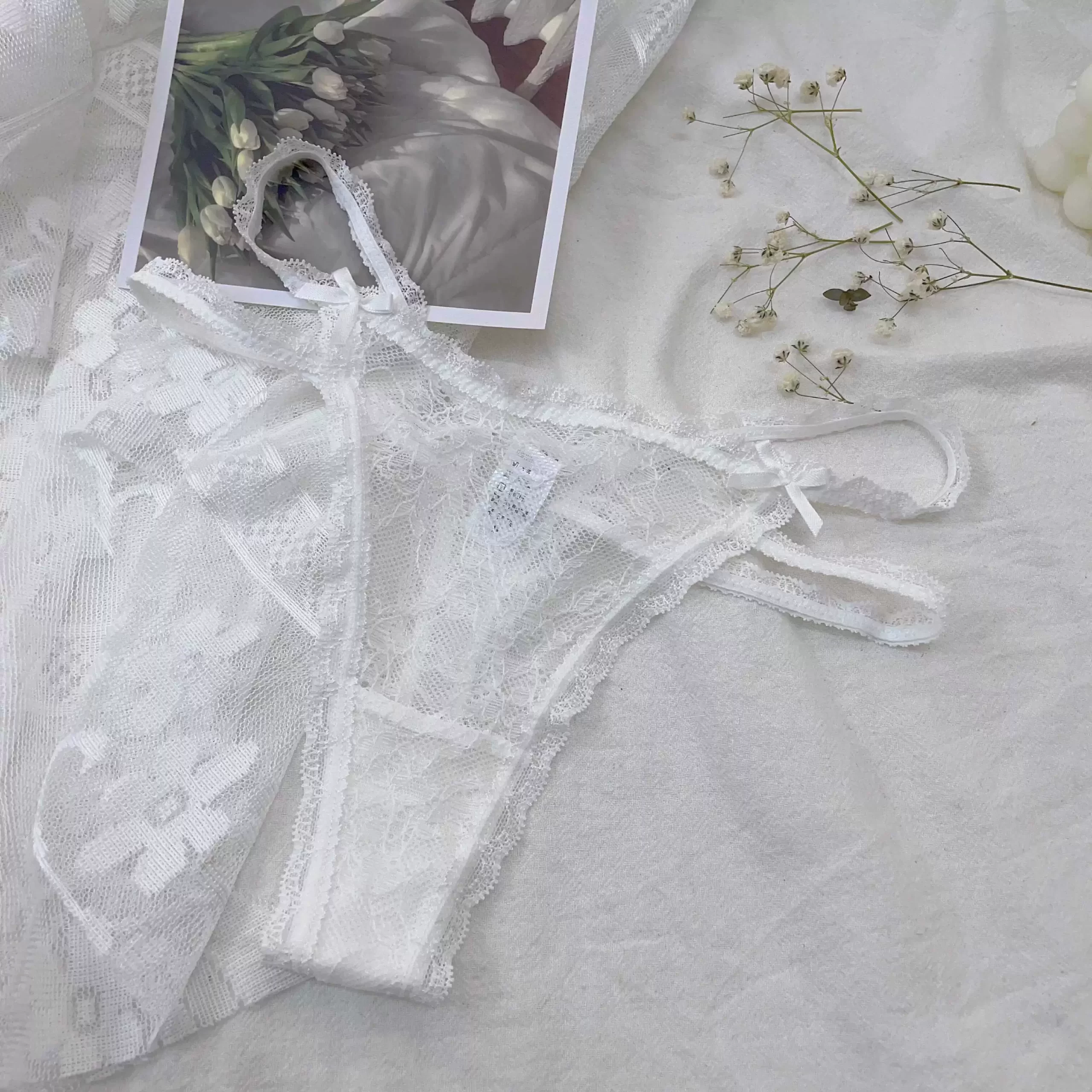 Fully transparent fresh thong thin bow low waist sweet white panties fat MM fairy girl sexy cotton stalls