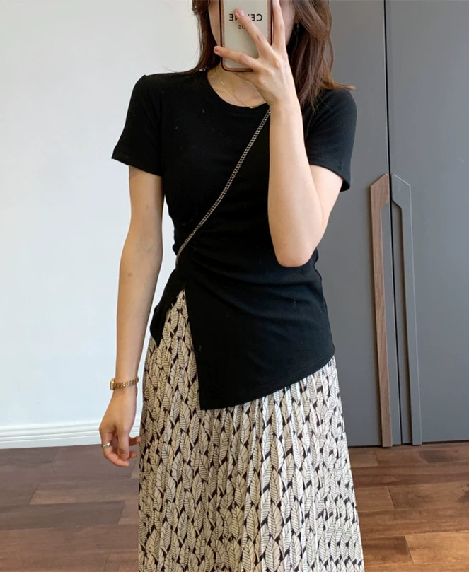 Side slit waist slimming t-shirt ins top short sleeves