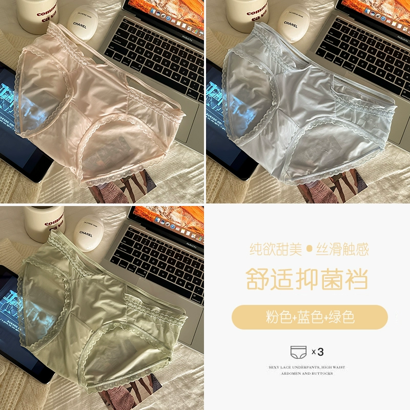 4 pieces of lace underwear for girls pure cotton crotch 2024 new style pure desire ice silk seamless sexy women’s triangle shorts