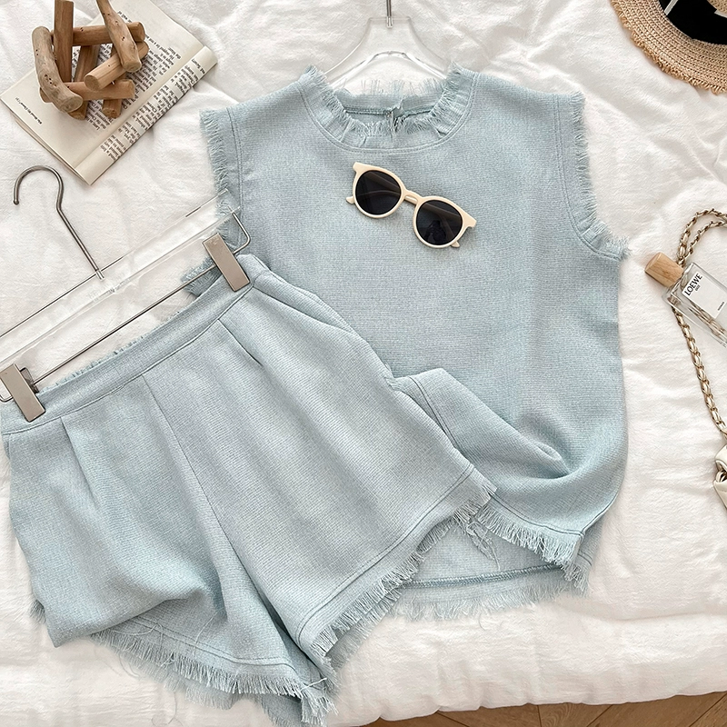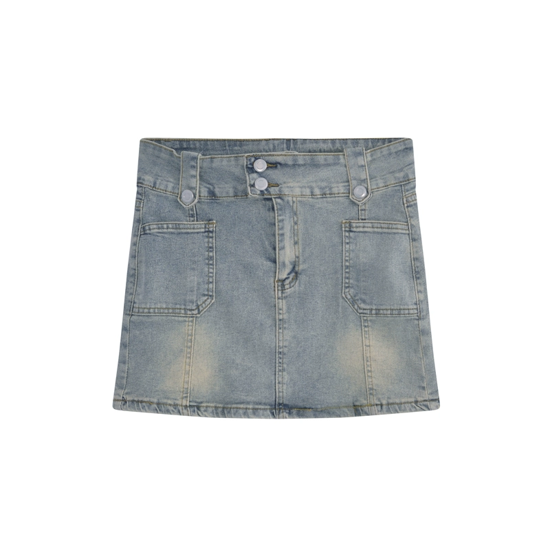 Retro cotton and linen Korean style slim double breasted suit skirt