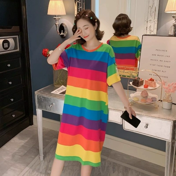 New style nightgown for women, summer short-sleeved, loose, popular style, sweet cartoon internet celebrity style, can be worn outside, cute dress at home