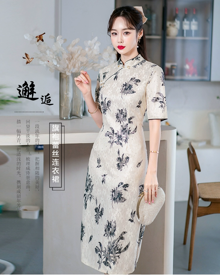 Slim fit young lace dress improved cheongsam