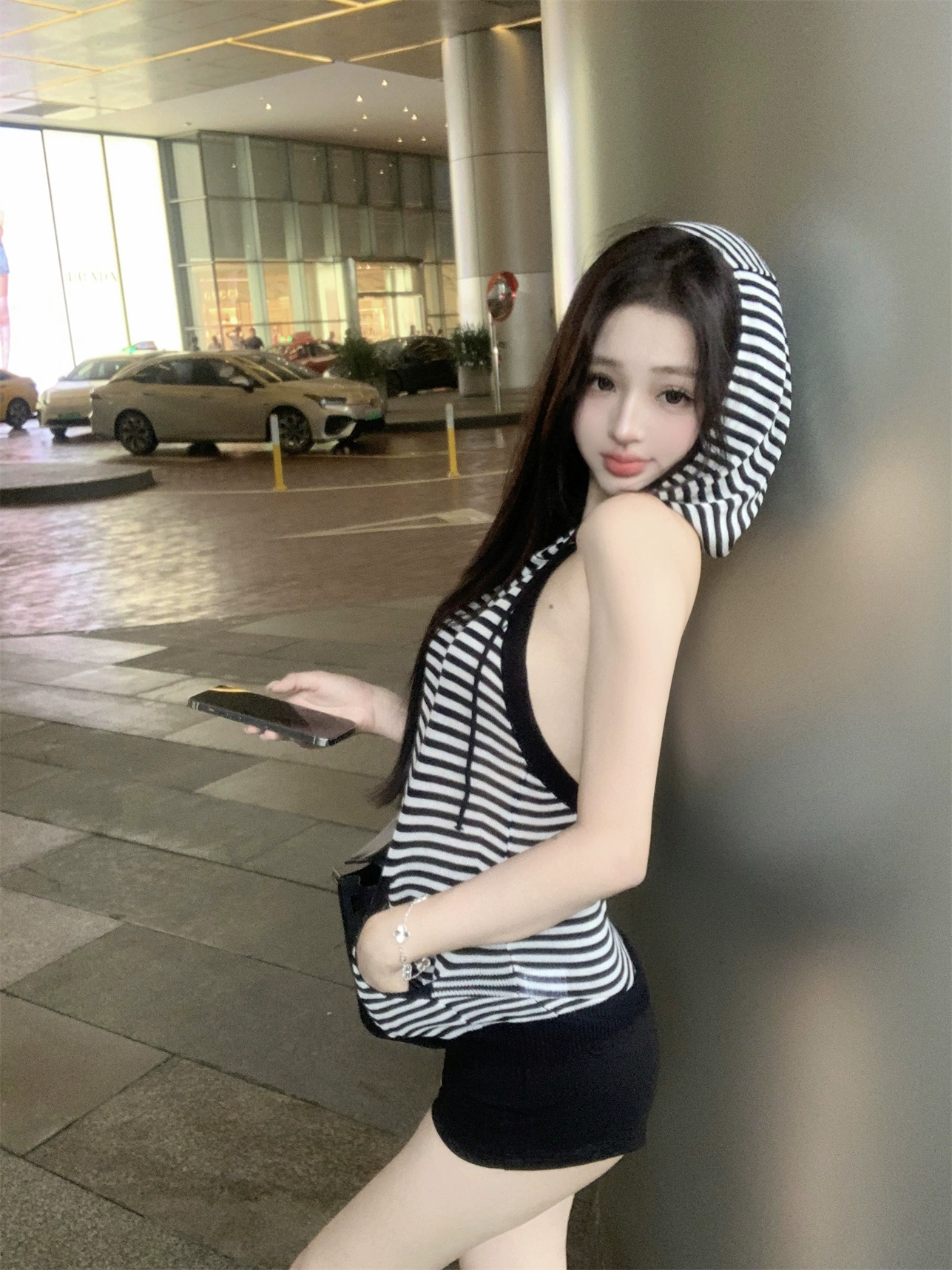 Flying sleeves color-blocked backless and flesh-covering shirt with gentle style