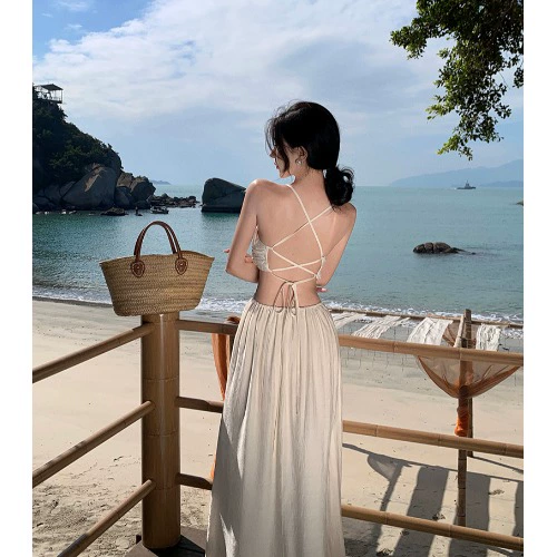 Sanya Bali Slim Beach Dress Strappy Backless Suspender Dress Feminine Pure Desire Seaside Vacation Long Dress