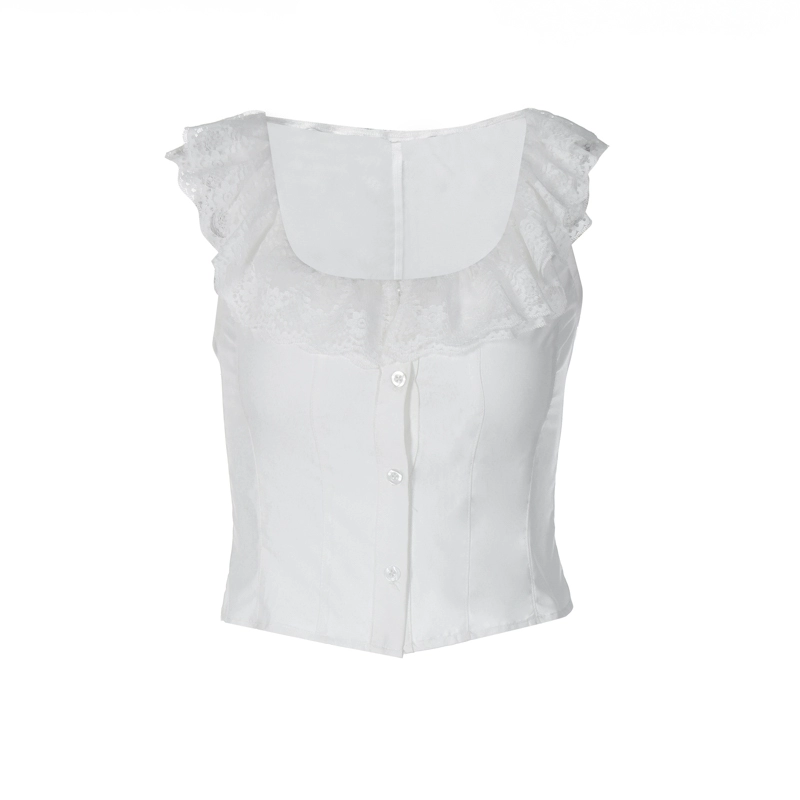 shemoda covered square collar single breasted zipper lace