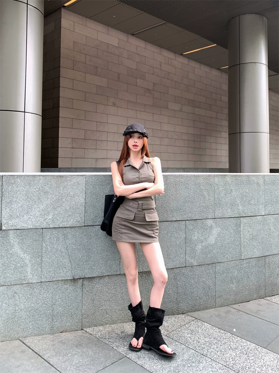 Lapel summer slim fit hip-hugging sleeveless dress