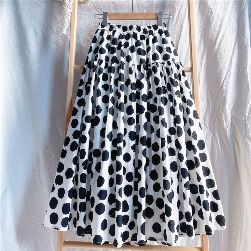 Spring and summer black and white polka dot cotton slimming and flesh-covering skirt