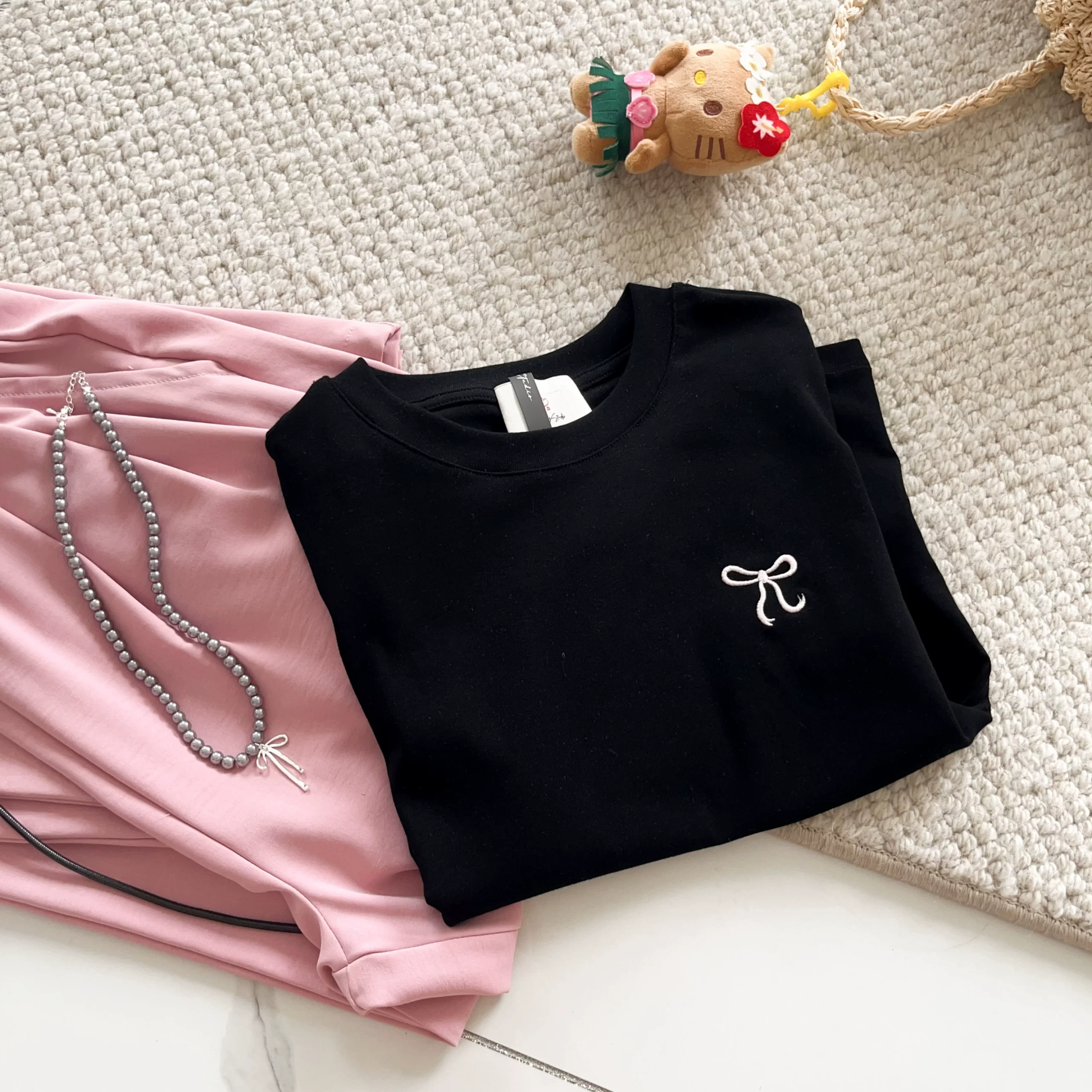 Printed short-sleeved summer loose casual three-dimensional bow
