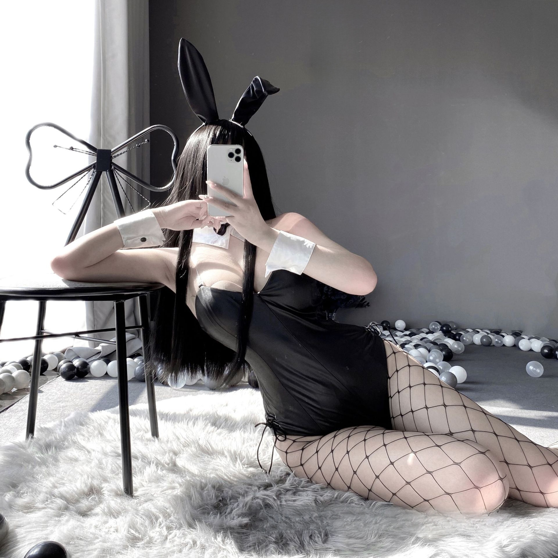 Lin Linting’s New Sexy Underwear Sexy Bunny Double-Layer Hidden Button Open Crotch Jumpsuit Cute Suit 2442