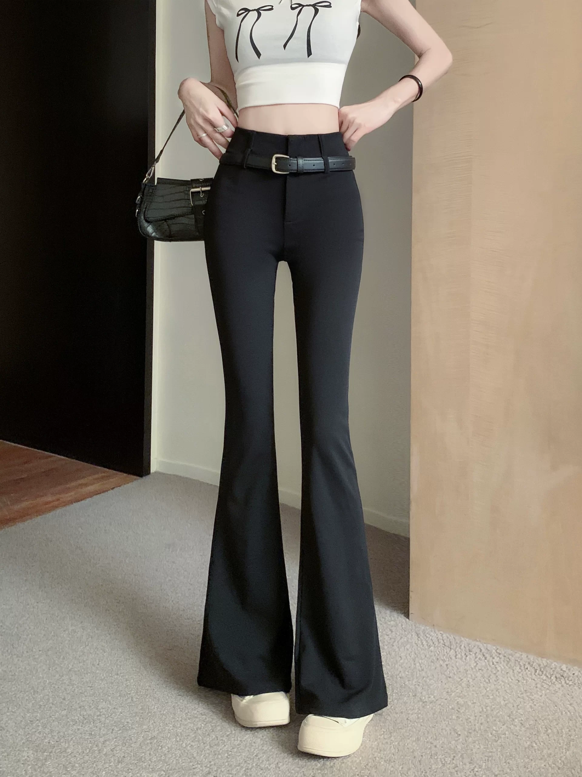 Black casual slim high waist suit with slightly flared pants