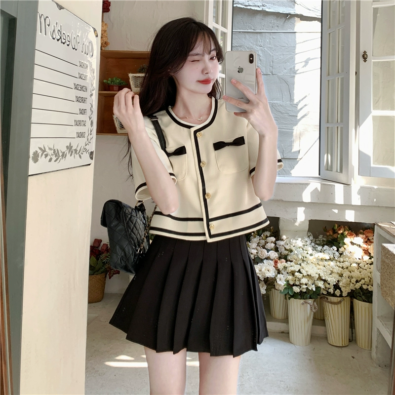 Chic contrasting waisted short-sleeved bestie top T-shirt