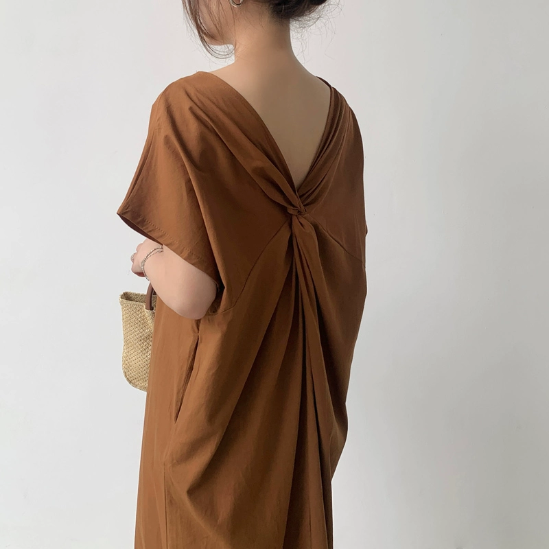 Korean chic retro French twist two-wear loose long skirt summer temperament short-sleeved dress