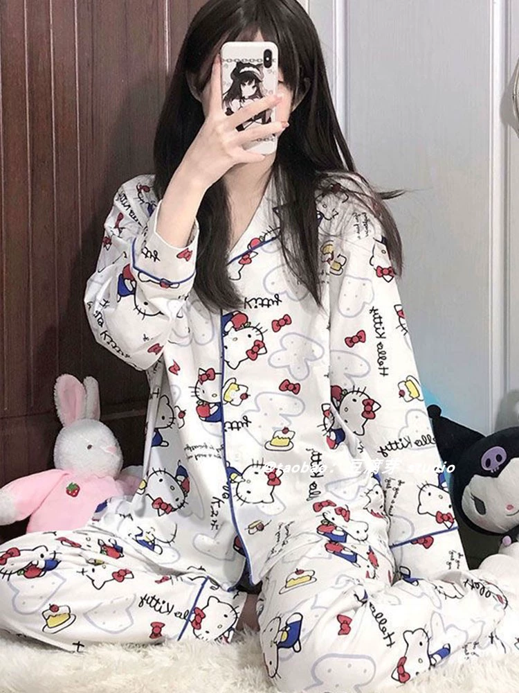 ins Japanese girl sweet and cute long sleeves and trousers cartoon