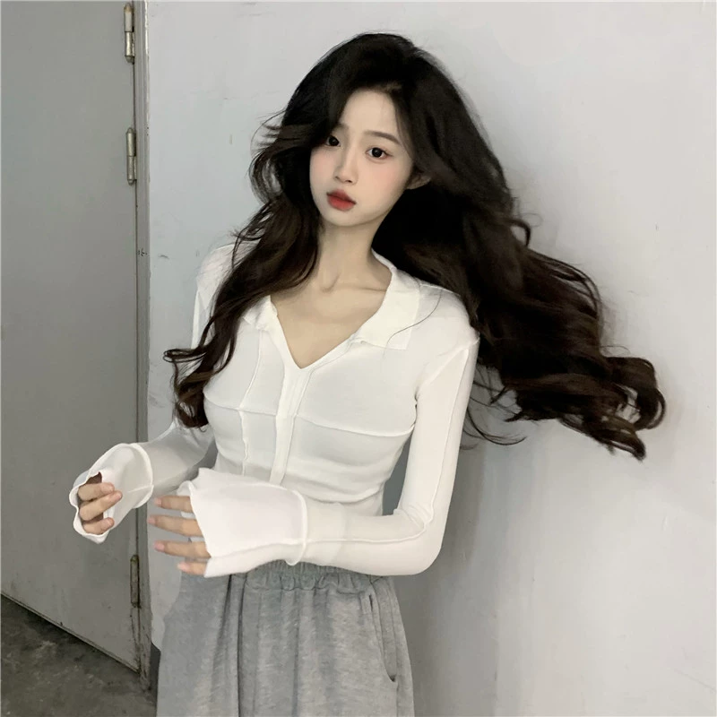 Off-the-shoulder summer slim-fit solid color thin short-sleeved T-shirt