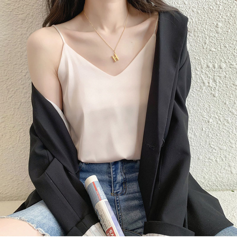 Satin Imitation Silk Camisole Women’s Inner Satin V-Neck Spring and Summer Loose Slimming Base Shirt Outer Wear Large Size Batch