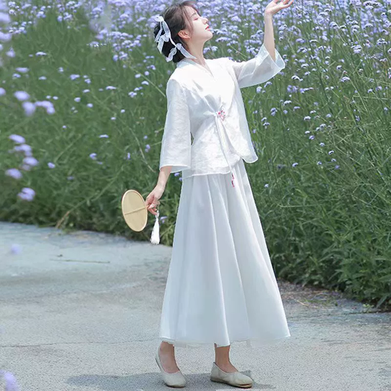 Light Chinese style chiffon shirt with mid-sleeve Zen style improved Hanfu