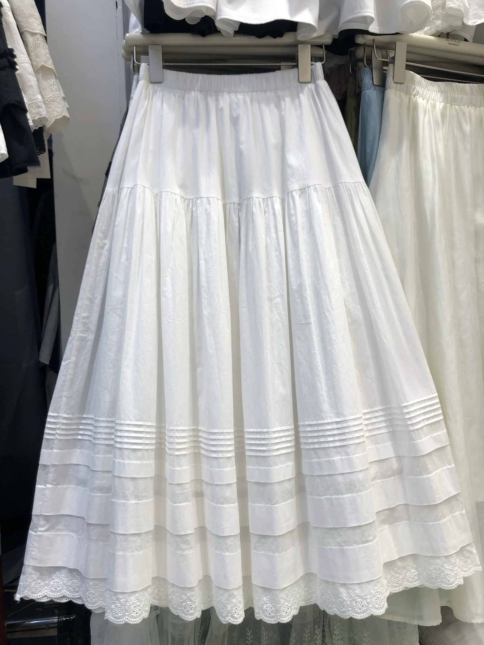 Pleated cake skirt is gentle and loose, covering the flesh and showing slimming lace