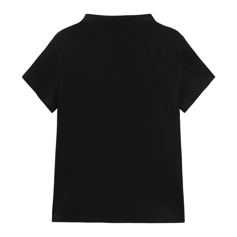 Tencel round neck design t-shirt slimming knitted short sleeves