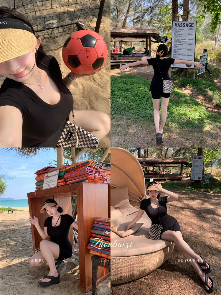 Women’s Ice Silk Short Sleeve Slimming Design Niche Summer Clothes