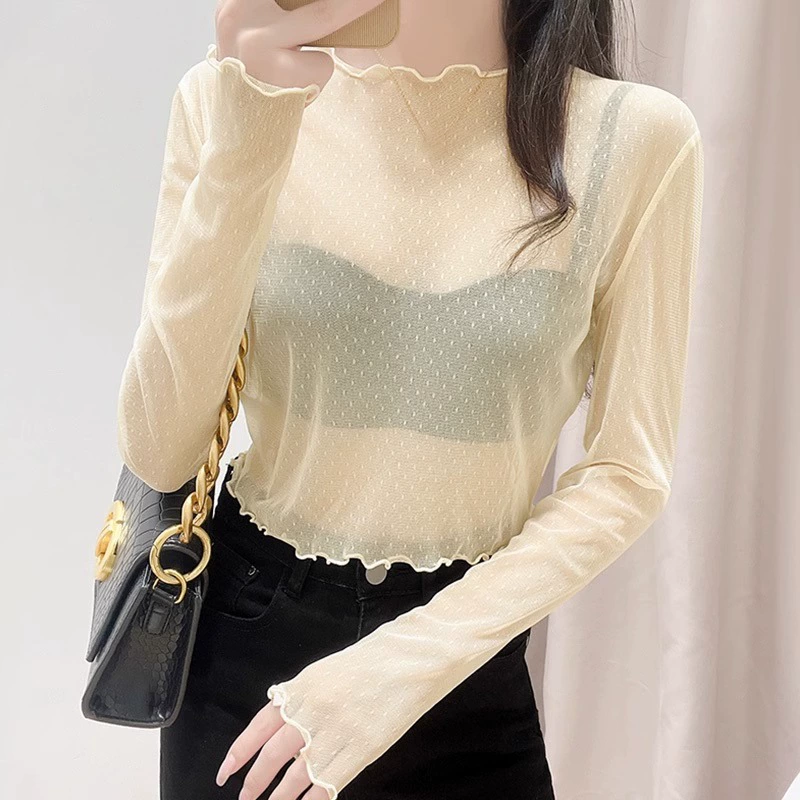 Early Autumn Mesh Long Sleeve Sheer Sand Slim Sheer Dress Lace