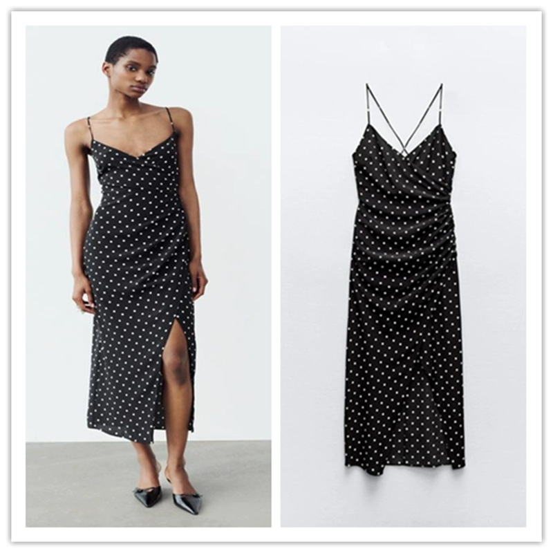 Women’s polka dot print dress with backless straps