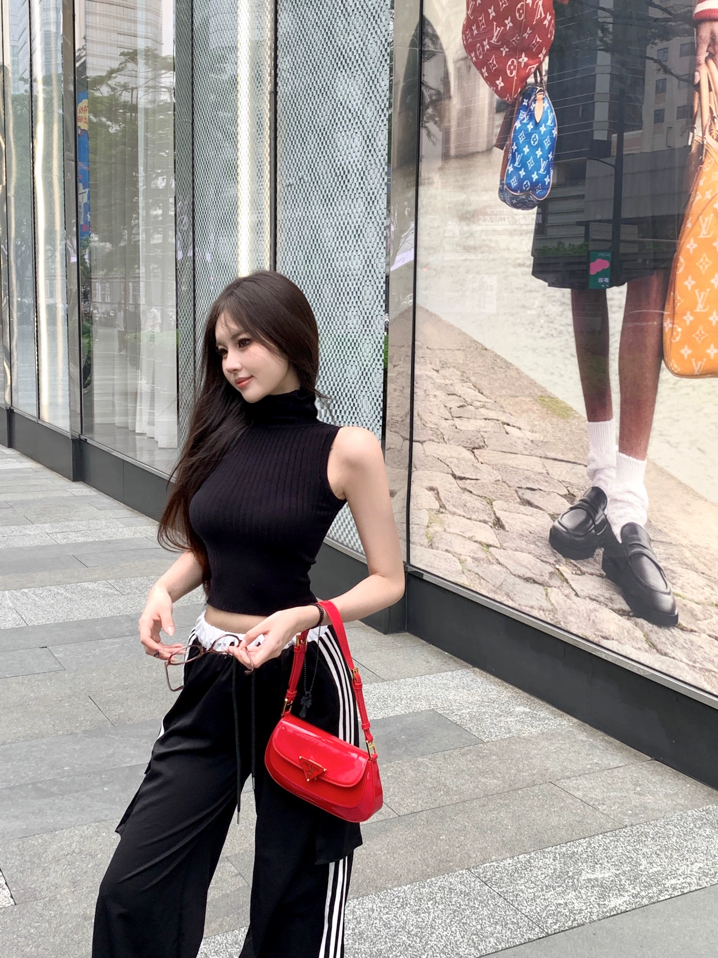Hot girl casual suspender jumpsuit two-piece halter neck set