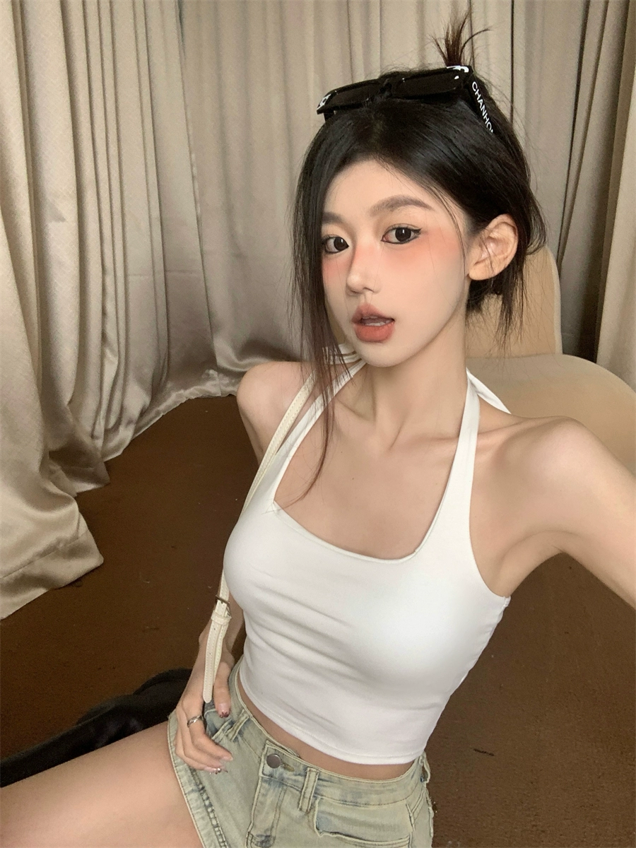 Beautiful back square neck exposed navel anti-exposure sleeveless camisole