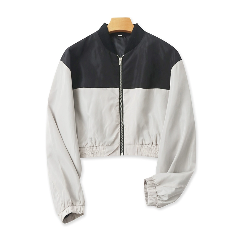 Fashionable color block zipper short windproof jacket