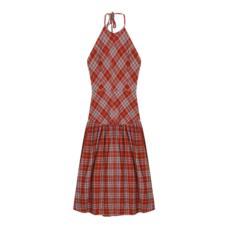 Red plaid niche summer backless dress