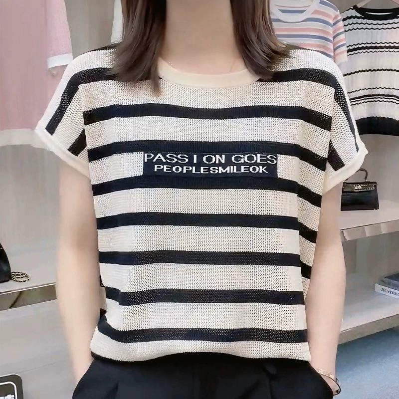 Internet celebrity thin sleeveless slimming round neck striped sweater