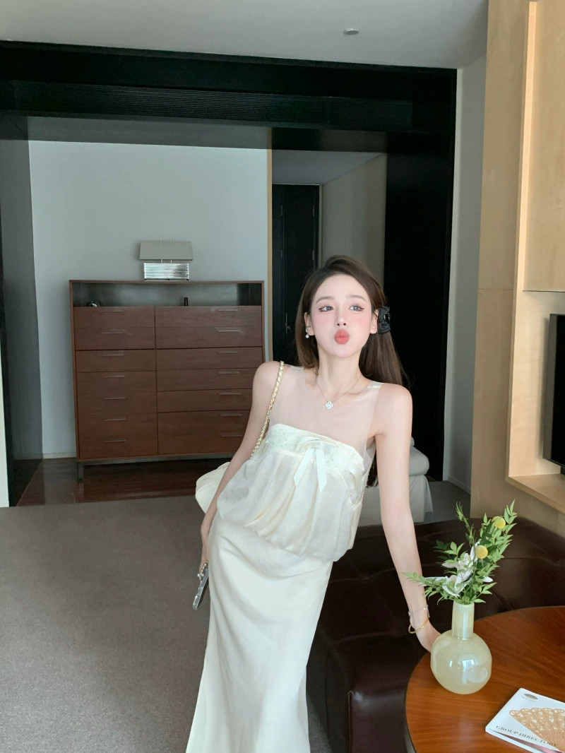 Dress 2024 new style women’s summer small and gentle Korean style sweet sleeveless vest knitted splicing long skirt
