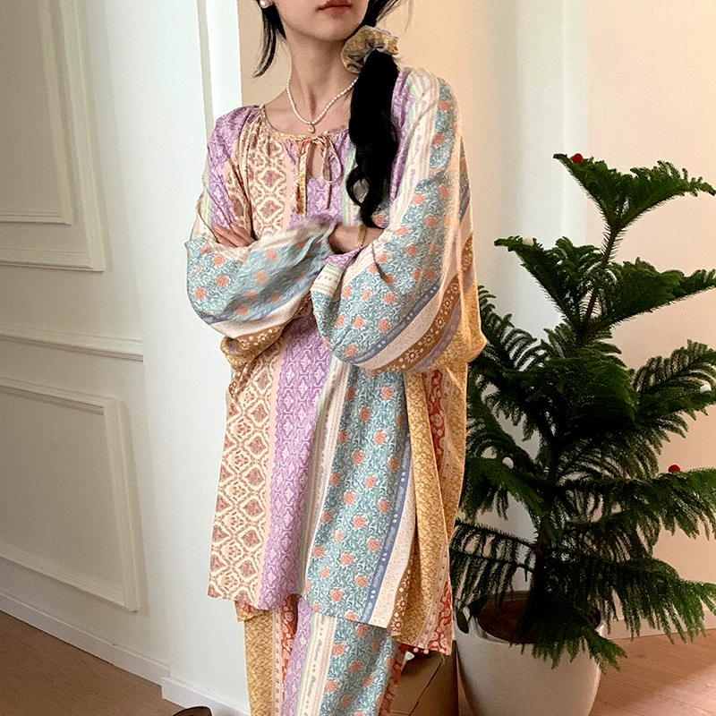 Cotton Silk Women’s Solid Color Home Clothes Spring and Autumn Pajamas