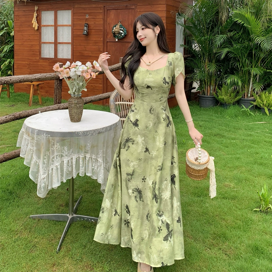 French retro summer hip-hugging short-sleeved dress for fat girls