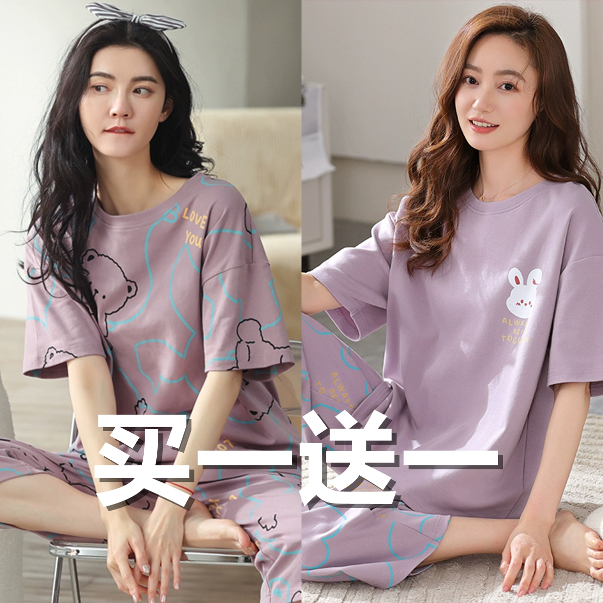 Women’s cotton summer spring and autumn short-sleeved plus size pajamas