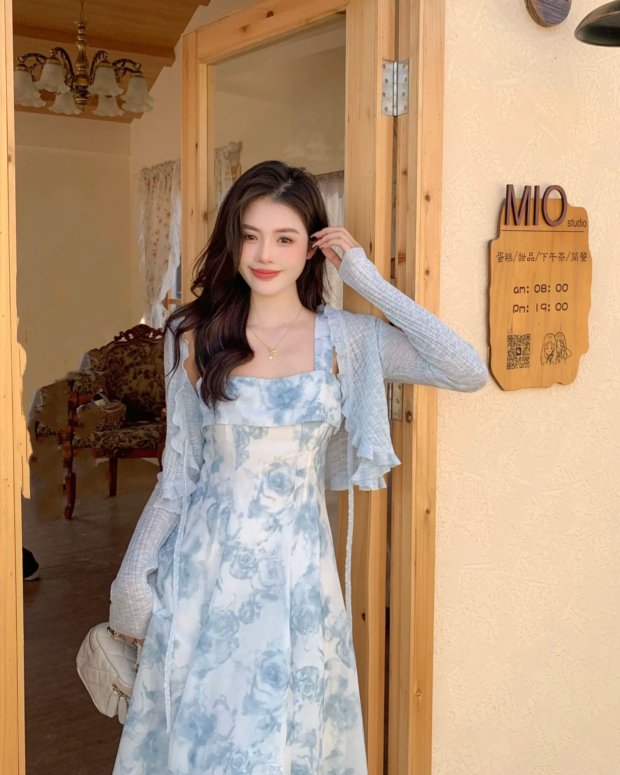 V-neck waist slimming suspender skirt suit knitted cardigan
