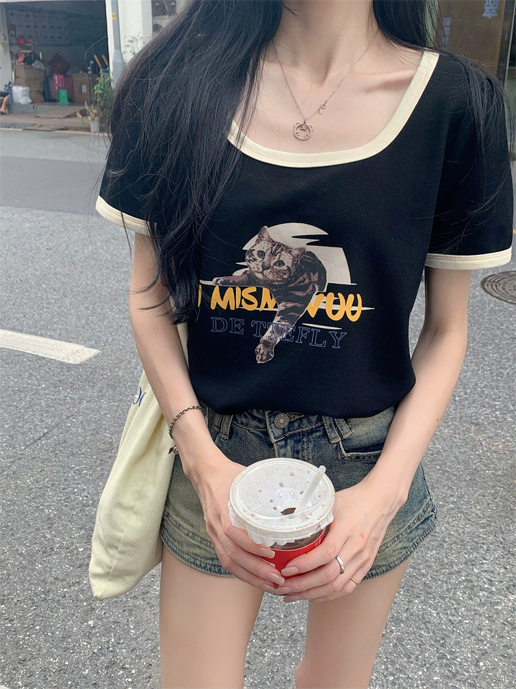 Women’s pure cotton summer slim fit niche short-sleeved T-shirt