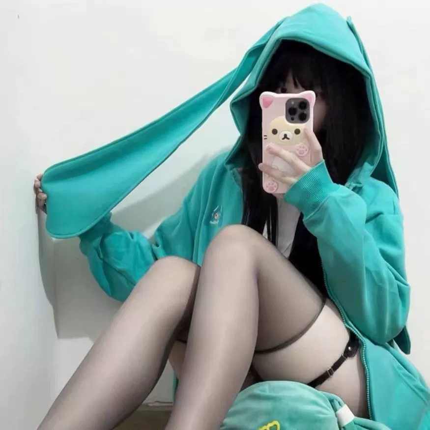 Subculture bunny ears detachable hooded thin sweatshirt