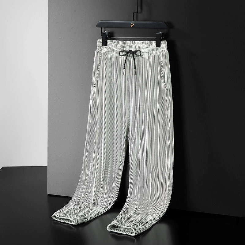 Ice silk thin loose straight high waist drapey wide leg pants
