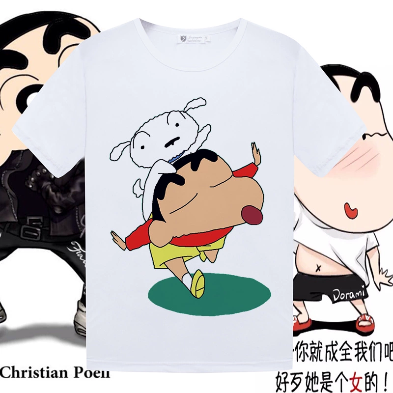 Summer couple clothing cartoon Crayon Shin-chan short-sleeved men’s and women’s loose large size student animation children’s peripheral clothes Q