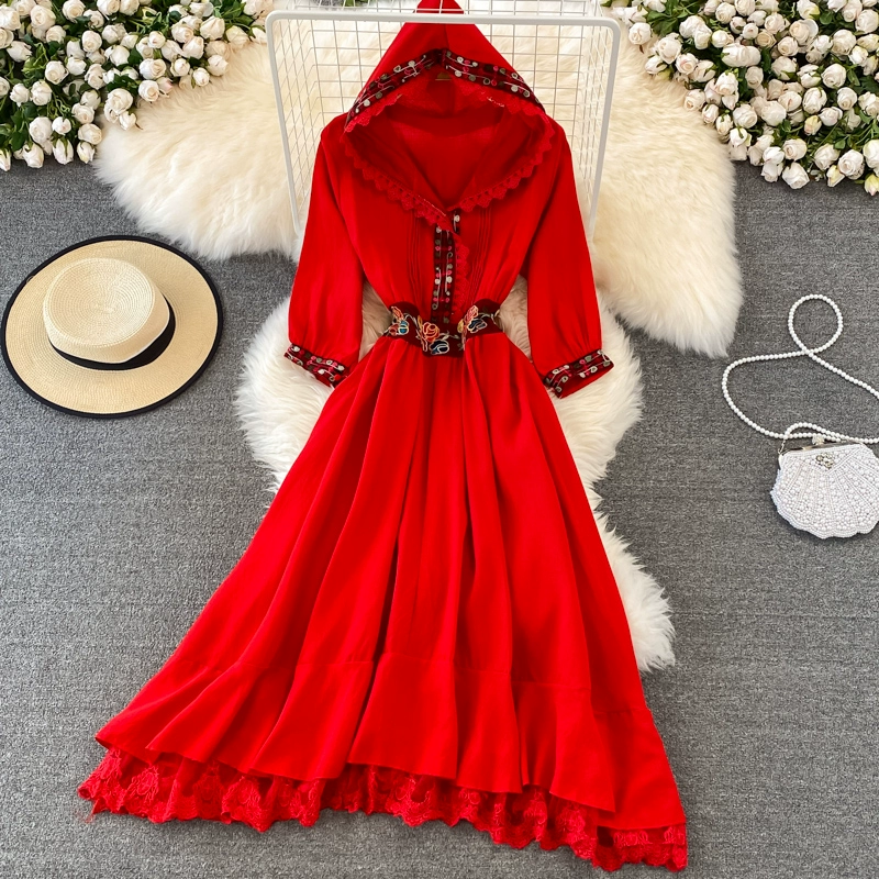 Retro Lantern Long Sleeve Single Breasted Dress Gown