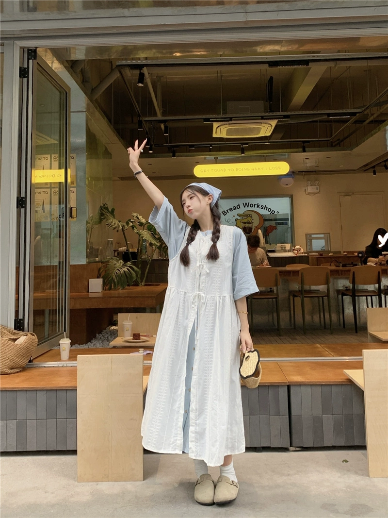 Lace-up layered summer loose casual embroidered dress